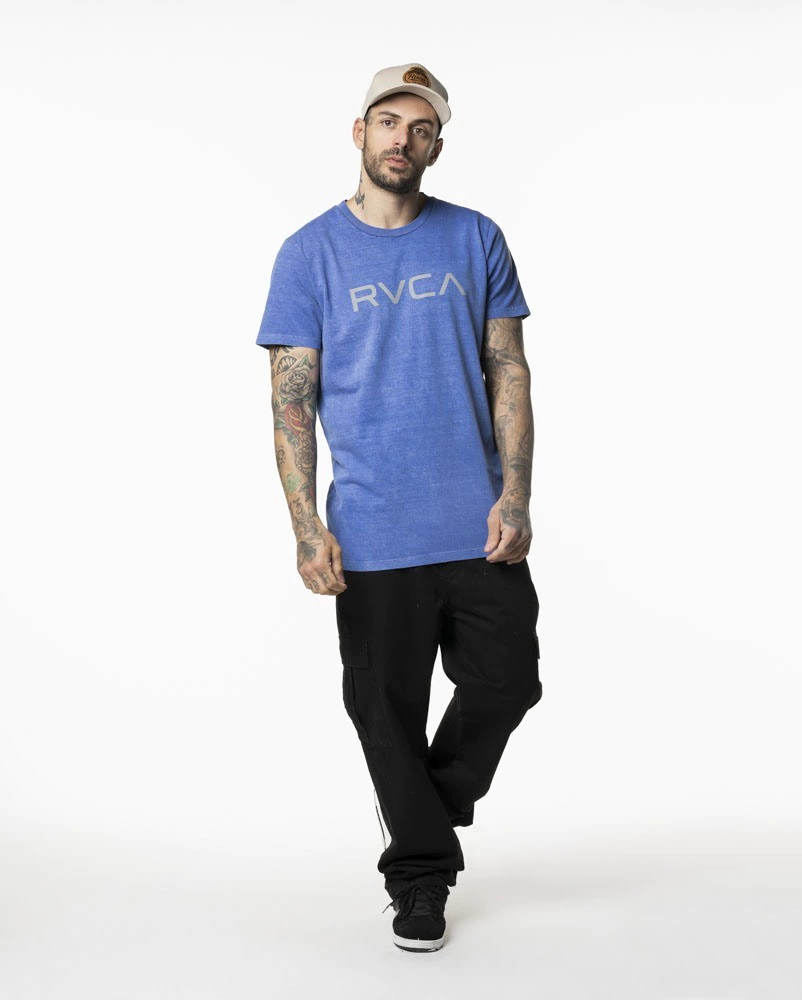 CAMISETA BÁSICA DE MALHA 30/1 PENTEADA, MODELAGEM REGULAR FIT (MAIS SOLTA AO CORPO PARA MAIOR LIBERDADE DOS MOVIMENTOS), COM ESTAMPA BIG RVCA CENTRALIZADA NA FRENTE, SILK INTERNO E TAG PERSONALIZADO.