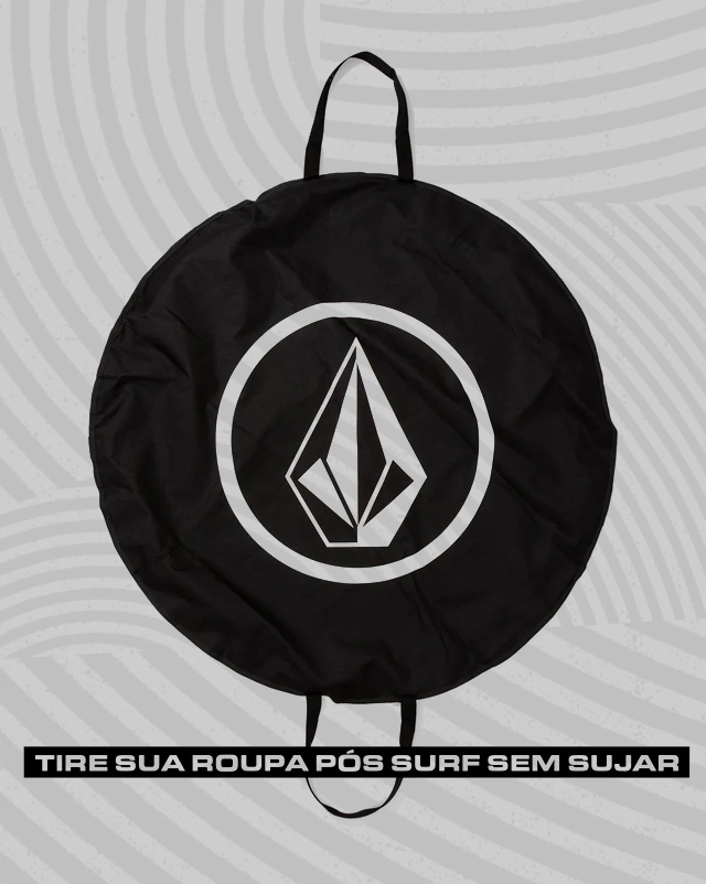 Changing Pad Volcom Circle Stone. Tapete para troca de roupa pós surf com bolsa para itens molhados. Possui estampa em silk Circle Stone frontal e elástico de ajuste.