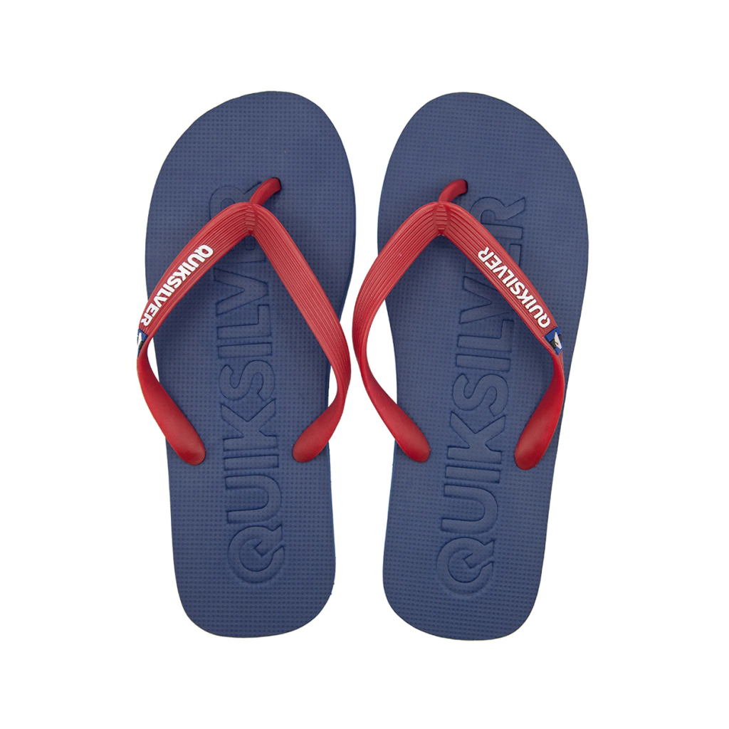 Chinelo Flipflop. Material borracha e EVA. Palmilha texturizada com QUIKSILVER em alto e baixo relevo. Tiras de borracha flexível personalizada. Solado personalizado em relevo.