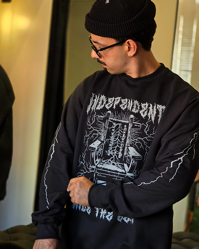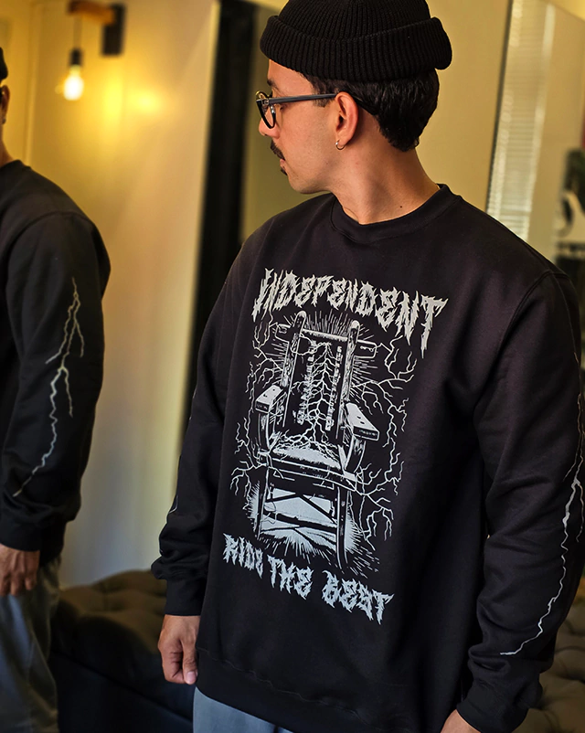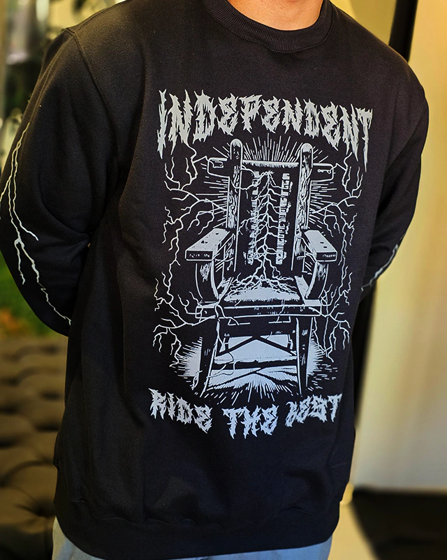 Com um visual sombrio e impactante, o Moletom Independent Lightning Crew traz a icônica cadeira elétrica envolta por raios em um design que exala atitude. A arte marcante e o estilo old school do logo “Independent” fazem deste moletom uma escolha perfeita para quem curte um visual pesado e autêntico. Perfeito para os dias frios ou para complementar o rolê com presença e personalidade.