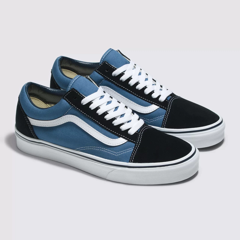 O tênis Old Skool, o clássico tênis de skate da Vans e o primeiro a conter a icônica sidestripe na lateral, é um tênis de cano baixo com cadarço que possui cabedal de lona e camurça resistente, biqueiras reforçadas para suportar o desgaste por repetição, cano acolchoado para dar suporte e flexibilidade e a clássica sola de borracha vulcanizada da marca.