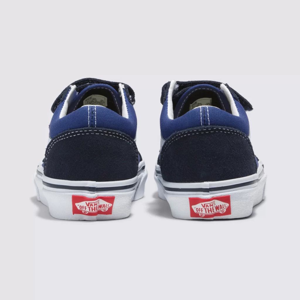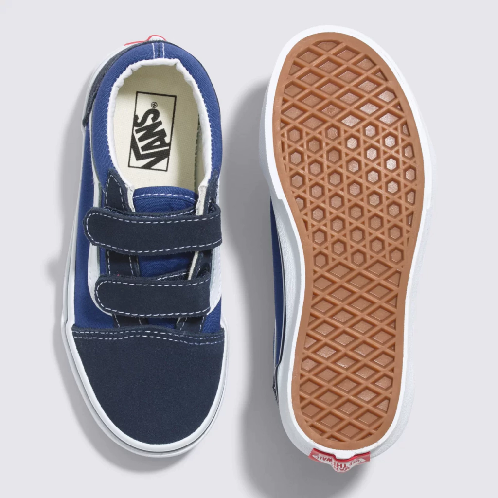 O Tênis Old Skool V Infantil Navy True White homenageia o icônico tênis com Sidestripe, substituindo os cadarços tradicionais por fechos duplos de velcro. Com cabedal durável de camurça e lona azul, este modelo de cano baixo proporciona um ajuste fácil e seguro que mantém o conforto dos pequenos durante todo o dia. O modelo também possui biqueiras reforçadas, colarinhos acolchoados de suporte e sola de borracha waffle exclusiva Vans.
